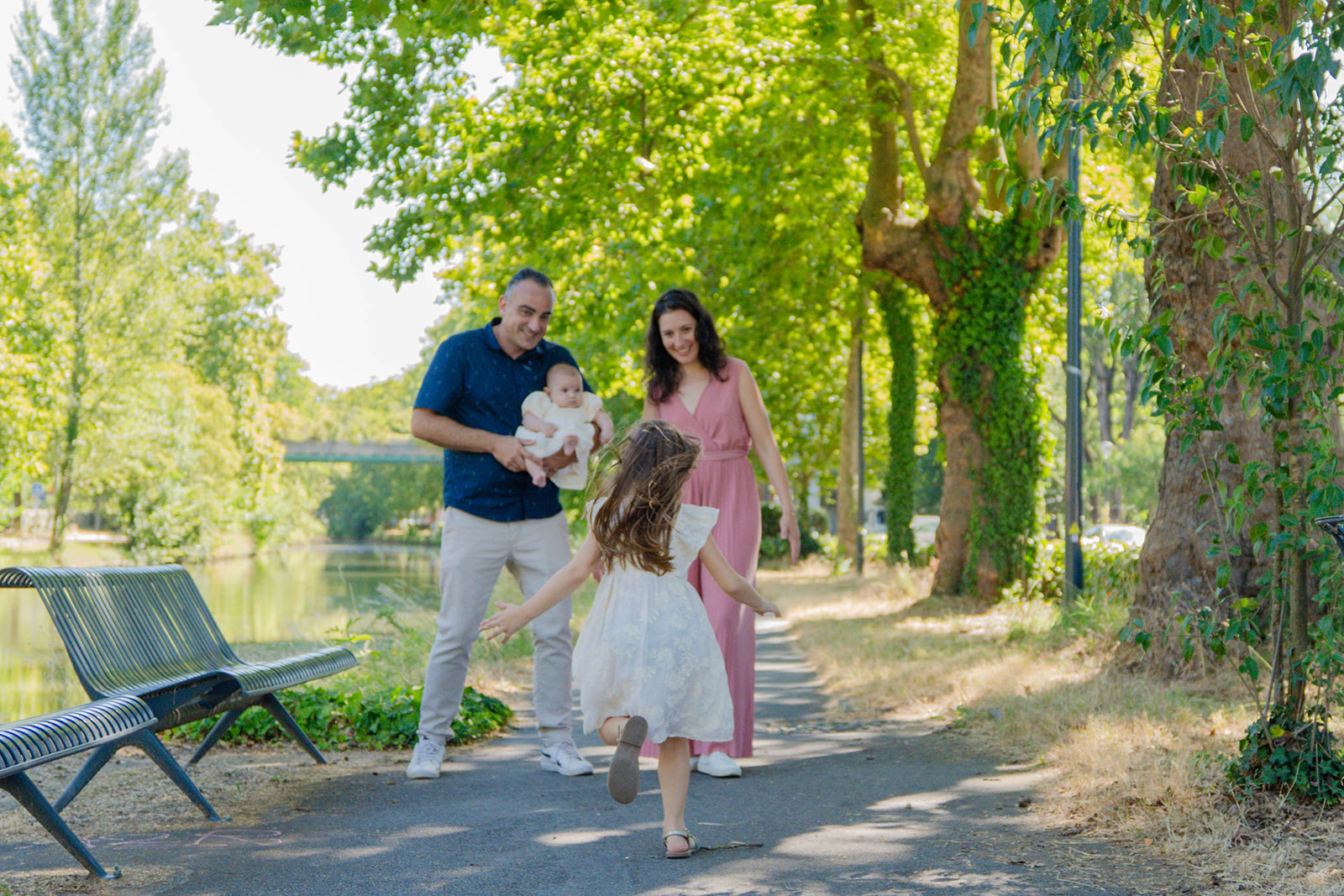 Avec Anne-Laure et sa famille, nous avons débuté la séance au Jardin Japonais de Compans-Caffarelli, véritable havre de paix en plein cœur de la ville. Puis, nous avons poursuivi la balade sur les bords du Canal du Midi, avec sa lumière douce et ses paysages romantiques, parfaits pour immortaliser des souvenirs en famille !